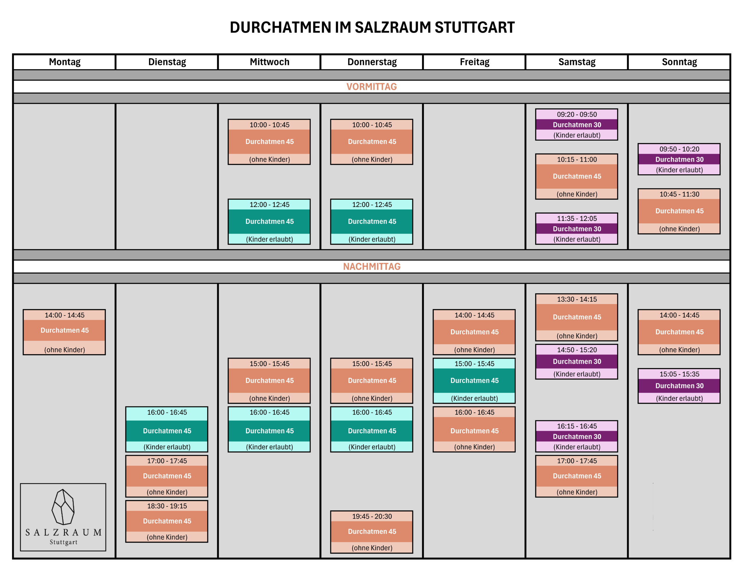 • Gruppenbuchungen für den Salzraum? Meldet euch gerne unter info@salzraum-stuttgart.de